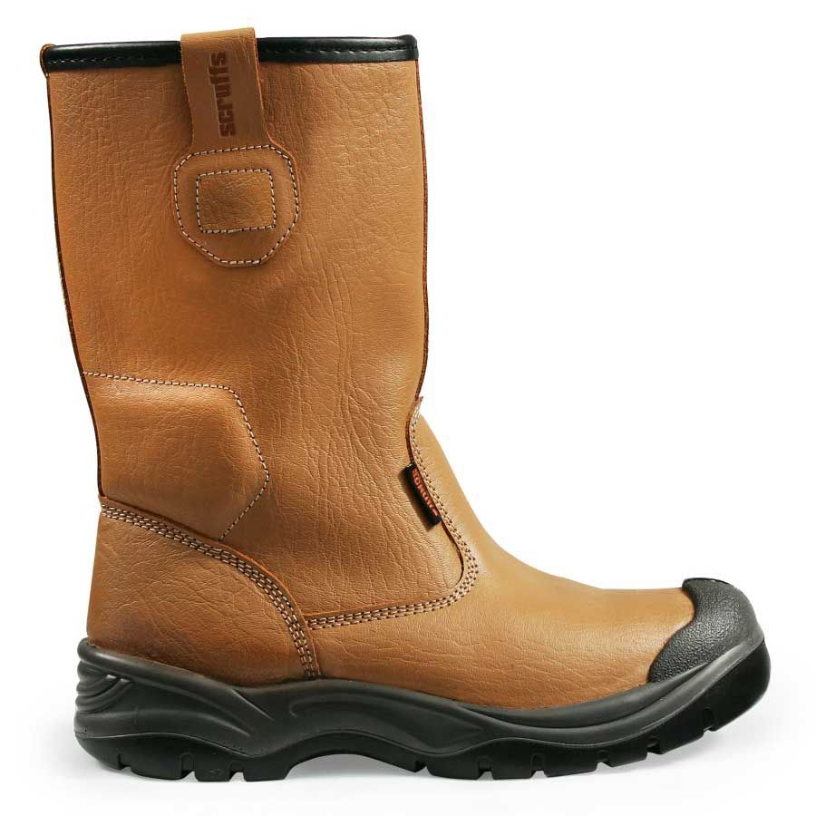 De Scruffs Gravity is een slijtvaste S1P-genormeerde veiligheidslaars met leren bovenwerk, stalen veiligheidsneus, stalen antiperforatiezool en beschermende kruipneus.