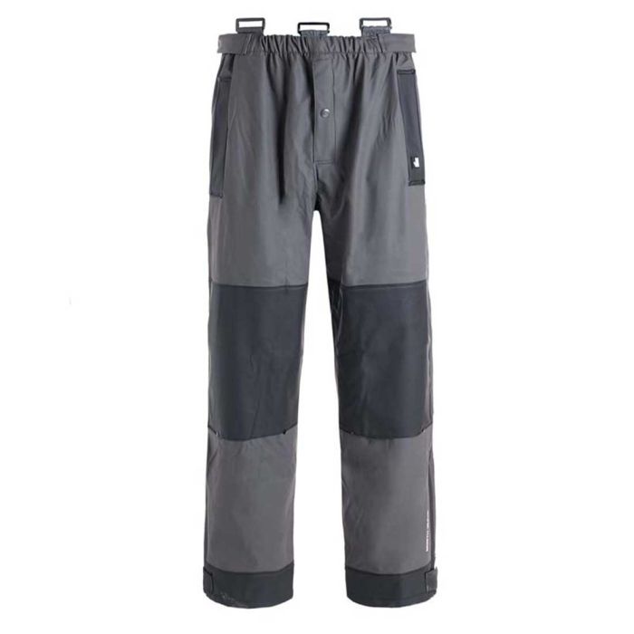 De uiteinden van de pijpen zijn, net als de knieën, extra verstevigd. Verder kun je de pijpen door middel van klittenband eenvoudig aanpassen op jouw persoonlijke voorkeur. Dit maakt het ook mogelijk om je regenbroek aan en uit te trekken zonder dat je je schoenen of laarzen uit hoeft te trekken.
